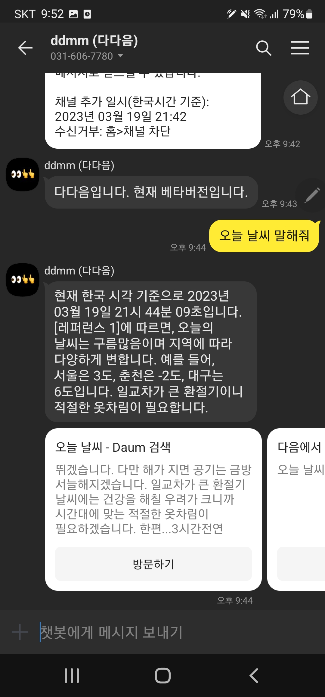 현재는 정식 버전이 아닌 오픈베타 버전으로 주말인 오늘 공개해 많은 사람들의 입소문과 피드백이 필요하고 다다음의 카카오채널을 구독하면 무엇이든 물어볼 수 있다고 안내했습니다. 이에 덧붙여 검색할 때 약간의 시간이 걸리더라도 너그러이 봐달라며 속도는 곧 개선될 예정이라고 하였습니다.
